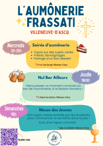 - Jeudi midi : temps d’évangélisation sur le campus Pont de Bois (rendez-vous 12h10 à côté du RU).